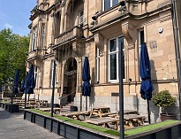 The bar has been given another full revamp by its new owners on its transition to Liberty House. A large staircase with a beautiful stained glass window at the top leads to an upstairs bar and eating area. There are two further bars downstairs. The rear ground floor Sports Room bar is bright and airy due to a perspex roof. There are plenty of tables and chairs in this area for diners. Two smaller lounge areas leading off from here have comfortable seating and a cosy atmosphere and are popular with diners. The main bar is huge with a high ceiling and tall pillars that are a notable feature. There is some seating to the front and plenty of standing room. Live sports including live Sky Sports football, Euro 2024 matches and Six Nations rugby matches is shown in the Sports Room which can be hired for a special event. There is a pool table in the room to the side. The pub is very popular bar with a mixed clientele of students, locals, business crowd and tourists. It is extremely busy at all times, especially at the weekend. There is a large outside seating area to the front of the pub that is open in fine weather to 6pm. Free Wifi throughout bar. The Library room, Snug restaurant & Sports room can be hired out privately for any special event, family celebration, special birthday, baby shower, hen or stag event. Contact the bar for further details. A large outside beer garden is located outside the front of the bar. Disabled access is excellent with an entrance at the side door - ring bell and a designated disabled toilet at the rear. Toilets on both floors are smart and clean. Price: Moderate. |