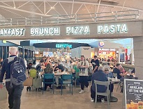 Bar & Kitchen open daily from first flight to last flight. Breakfast served daily until 11am includes traditional fry up £9.99, veggie breakfast £7.49, vegan breakfast £10.99, ultimate double fry up £13.29, bacon stottie £7.49, sausage stottie £7.49, egg stottie £7.49, ultimate breakfast stottie £8.99. Main menu from 11am includes all day breakfast £15.69, mains from £14.49 - £16.49, sharers £5.99 - £12.49, pizzas £10.99 - £14.99, burgers £15.89 - £17.69, pasta £11.99 - £15.29, puddings £4.29 - £5.29. Food Menu map Website: newcastleairport.com/shop-eat-drink/food-drink Station House